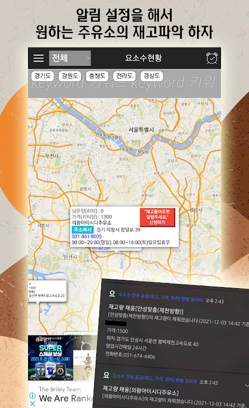 게다가 재고가 없는 주유소에 한해 "알람 기능"을 하면