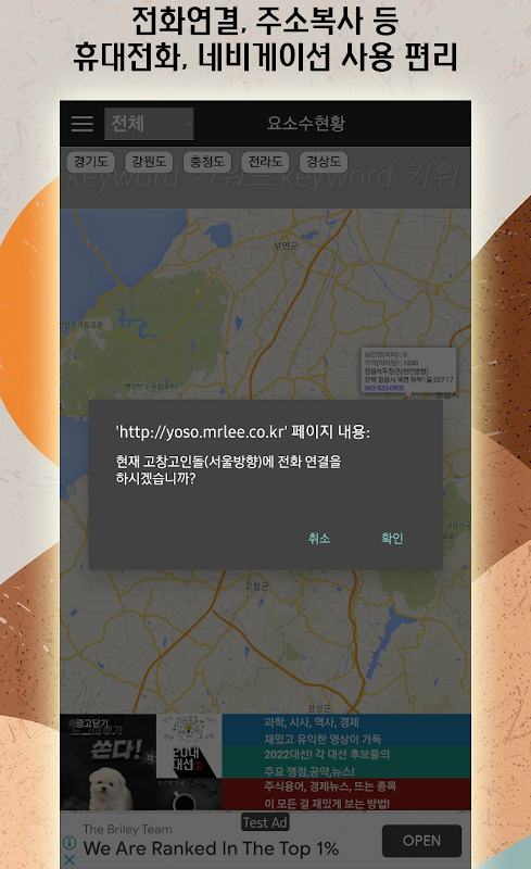 주소저장, 전화번호 연결 기능까지 구비돼있습니다.