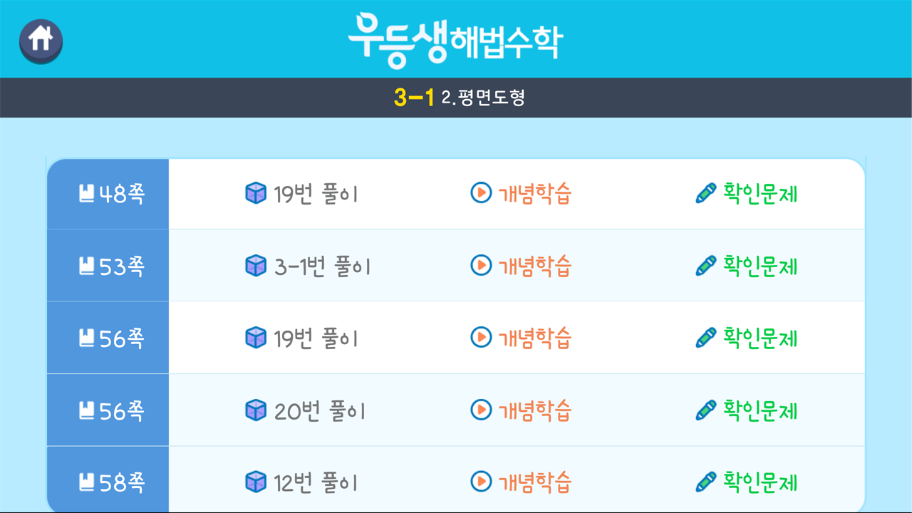 우등생 해법수학 3-1 2. 평면도형 3D 도형 영상학습