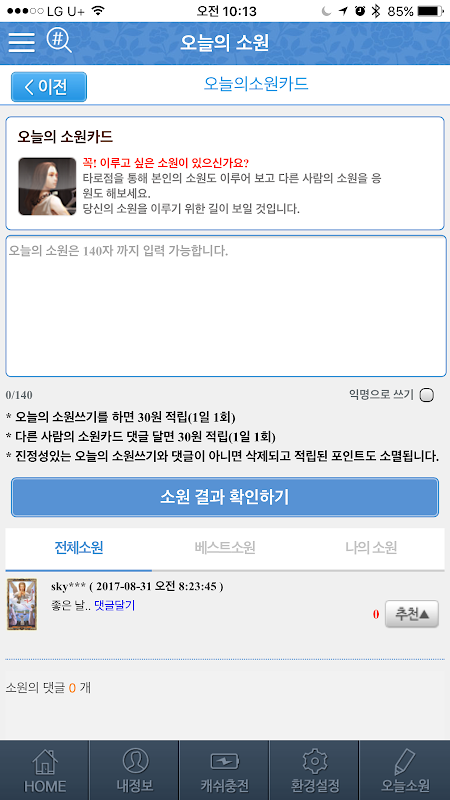 꼭 이루고 싶은 소원이 있을 때 타로카드를 통해 본인의 소원을 비는 것입니다. 무료로 이용할 수 있고, 소원을 빌면 무료 포인트를 적립해 드리고 있습니다.