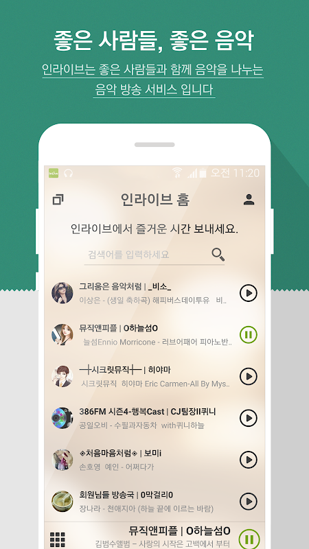 좋은 사람들과 함께 음악을 나누는 무료 음악방송 청취 앱 인라이브