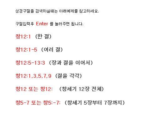 ★ 성경구절 찾기는 성경구절을 아래 예제처럼 입력후 Enter 를 해보세요!
