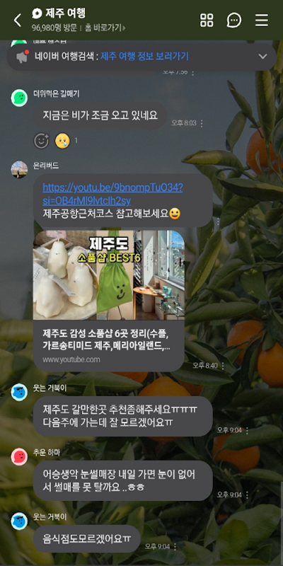 Informasi perjalanan Jeju berbagi obrolan terbuka, aplikasi pintasan Naver Open Talk.