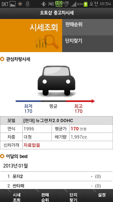 이 어플의 중고차시세는 중고차조합에서 사용되는 BtoB 프로그램에서 DATA를 취합.
