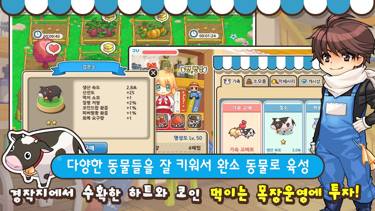 평화로운 목장에서 다양한 동물들을 키워가며 친구들과 함께 즐기는 본격 목장 타이쿤 게임!