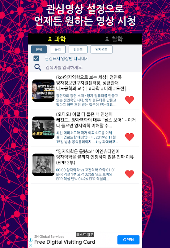 각각의 영상을 살펴보며 철학과 과학에 대한 지식, 꿈을 키워보세요.