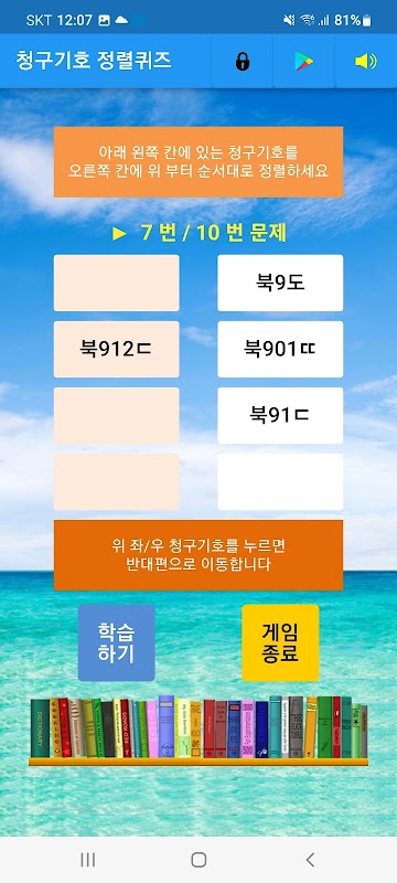 청구기호 정렬퀴즈 - 도서관 필수 앱 1.0.2