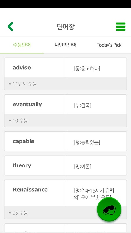 오답노트 / 약점노트 / 즐겨찾기 / 스크립트 단어 보기 / 스크립트와 해설을 한눈에 / 수능단어장 / EBS 단어장 / 실전모의고사 / EBS영어듣기의 모든 교재를 상황 및 전략으로 구성된 유형별 문제 / 이어듣기 / 2분 모의고사 / 단어시험 / 틀린단어만 시험