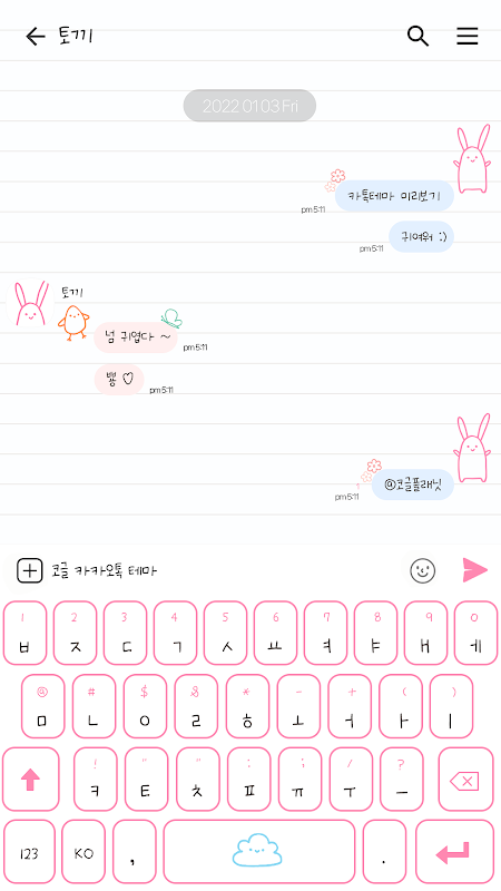 카카오톡 테마 - 손그림 토끼_줄노트 10.1.5