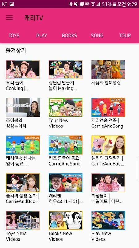 캐리TV는 '캐리와장난감친구들' 공식앱으로 ▷캐리앤북스 ▷캐리앤플레이 ▷엘리가간다 ▷캐리앤송 등 10여개 채널을 동시에 이용할 수 있습니다.