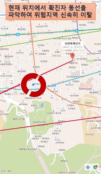 코로나 바이러스 확진자들의 경로를 한눈에 볼 수 있는