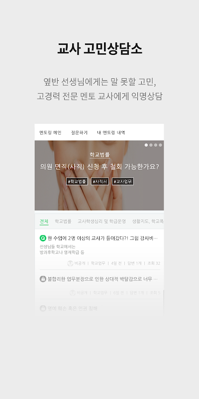 교사블로그 / 집합연수·교사모임 플랫폼 / 익명고민상담소 / 교구재몰 등