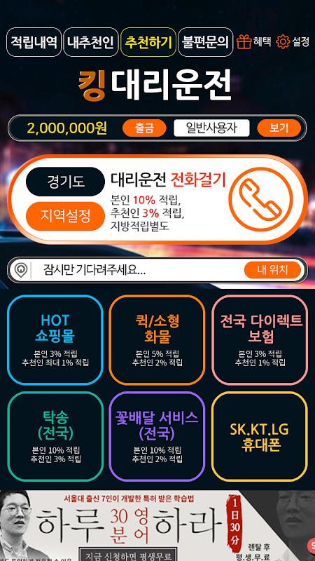 - 추천한 친구가 대리호출시 3%도 내게로 적립~