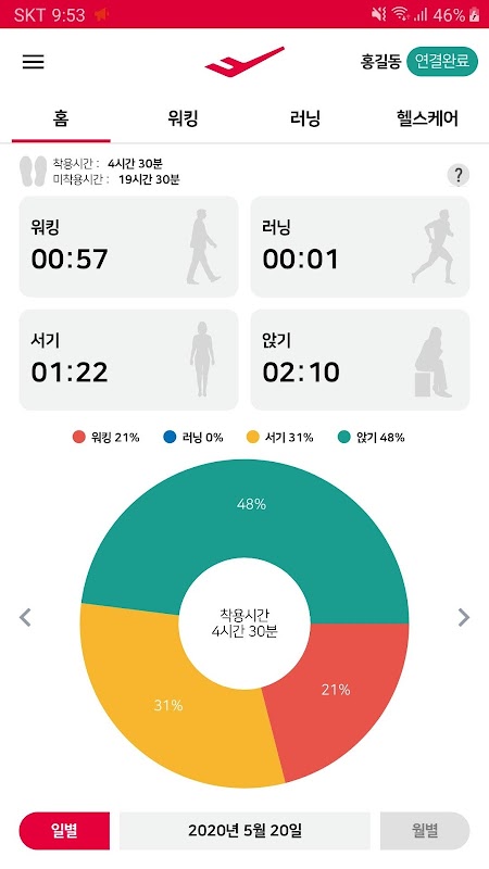 Pada tab ‘Berjalan’, Anda dapat memeriksa seberapa jauh Anda telah berjalan, seperti jumlah langkah, panjang langkah, keseimbangan kiri-kanan, dan sudut kaki. Mengetahui informasi kerja Anda adalah langkah pertama dalam membentuk kebiasaan kerja yang sehat.