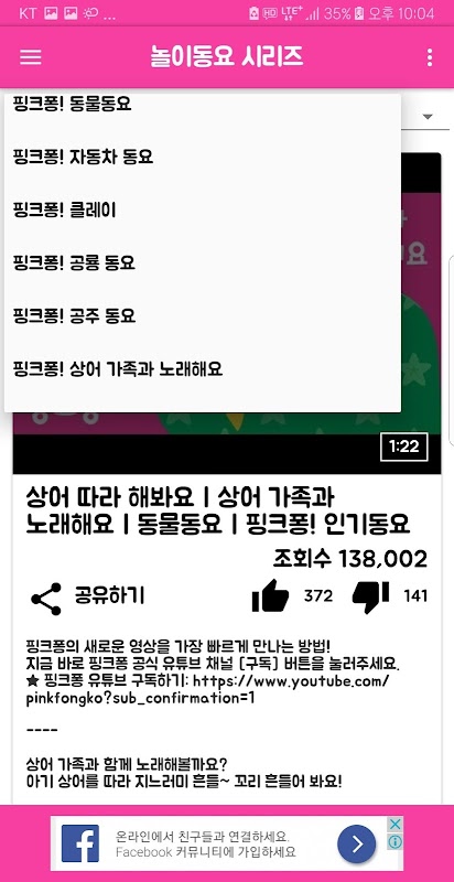 - 동영상 재생목록별 핑크퐁 동영상을 모아놨습니다.