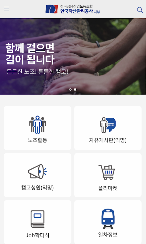 Halo. Ini adalah aplikasi resmi dari Cabang Perusahaan Manajemen Aset Korea dari Serikat Buruh Industri Keuangan Nasional.