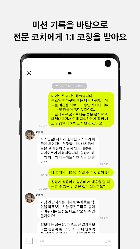 ▶ [톡] 코치와 피드백을 주고 받을 수 있는 코치 채팅 기능