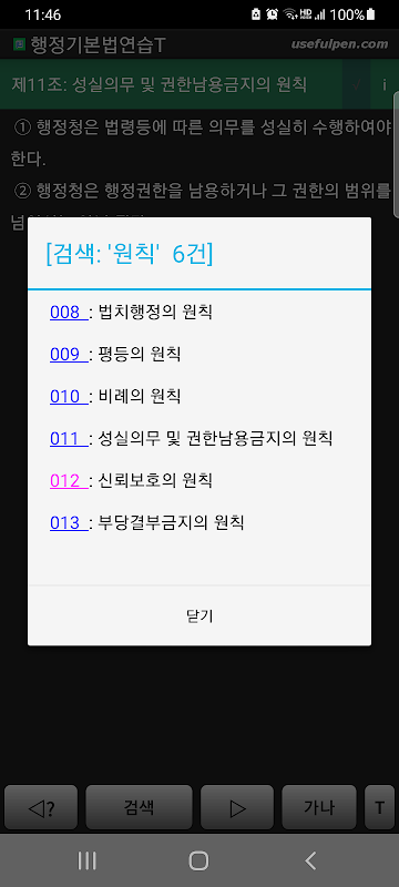 - 현재 조문 반복 듣기: 현재 선택된 조문을 무한 반복해서 들음
