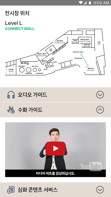 비콘 기반 음성 도슨트, 수화 동영상 제공.