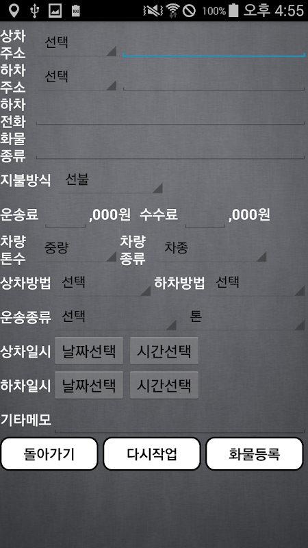 (주)한국머털테크의 화물앱넷 거래처용앱 입니다.