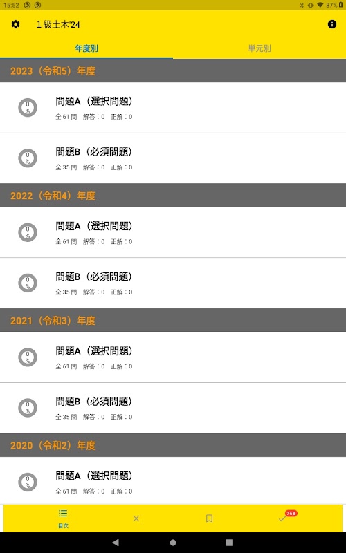 Anda dapat memeriksa tingkat jawaban/tingkat jawaban yang benar berdasarkan tahun dan satuan dalam grafik, sehingga Anda dapat melihat sekilas kelemahan Anda.