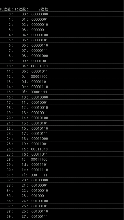 - Ketika dimulai, desimal, heksadesimal, sesuai daftar 0-4095 akan ditampilkan untuk nomor biner.