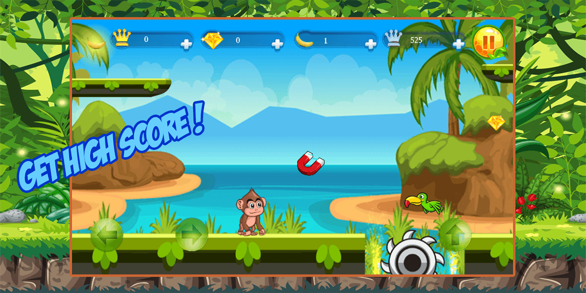 🍌Monkey Mobu’s jungle Adventure are very hungry. Therefore, he was looking for banana monkey in the woods. However, there are many things to stop it in the forest like stone statues, fierce birds, and swimming short and so on.
