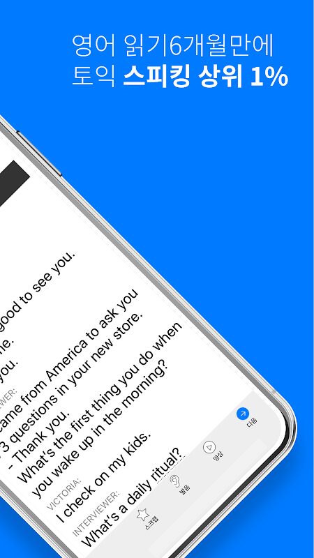 토익 775점 이었던 제가 하루 1시간씩 6개월간 영어 읽기를 하고 토익 스피킹 상위 1% (레벨8) 를 받았습니다. 6개월 동안 분명 영어 읽기만 했는데 스피킹이 올랐습니다. 해석과 발음만 올려도 스피킹이 간접적으로 상승한다는 걸 스스로 증명했습니다. (저는 이과에 영어 비전공자입니다.)