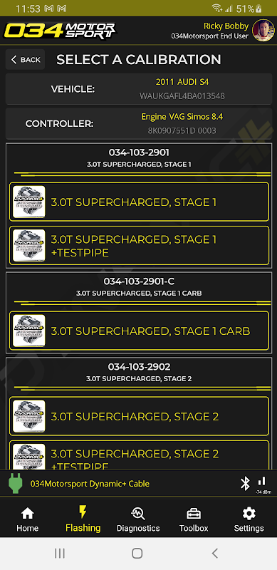 Antarmuka Smartphone 034Motorsport memungkinkan pelanggan 034Motorsport memprogram mobil mereka dengan perangkat lunak Dynamic+. Ini juga berisi fungsi yang berguna untuk diagnosis, seperti pencatatan data, pembacaan dan pembersihan kode kesalahan, serta alat dan prosedur khusus platform.