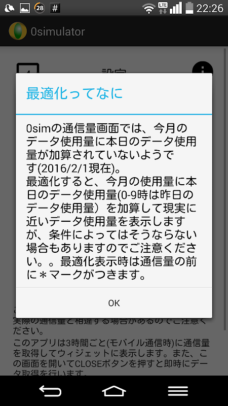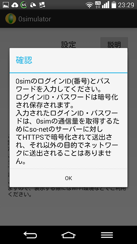 ※So-netの公式サイトから通信量データを取得するために、このアプリを利用するには0simのユーザIDとパスワードの入力が必要になります。このアプリは入力されたIDとパスワードをSo-netの公式サイトにのみ送信して通信量データのみを取得します。本アプリは個人情報の収集などは一切行いませんが、理論的には個人情報を取得することも可能ですので、少しでも懸念される方は精神衛生上ご利用を控えることをお勧めします。