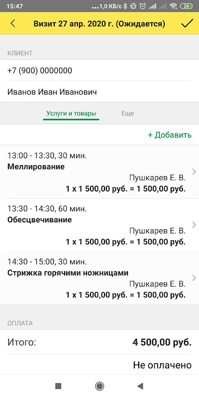 Aplikasi seluler 1C: Salon Kecantikan akan mengurangi biaya otomatisasi salon dan menggunakan alat kehidupan sehari-hari yang biasa - ponsel Anda. Pemilik salon akan menerima informasi tentang pendapatan, pelaksanaan hasil yang direncanakan, pengembalian dan banyak indikator lainnya. Administrator akan dapat merencanakan kunjungan, mengatur jadwal untuk para master. Untuk master, jurnal catatannya tersedia dan kesempatan untuk menentukan materi dalam kunjungan. Aplikasi ini memungkinkan Anda untuk memindai kode QR MDLP.