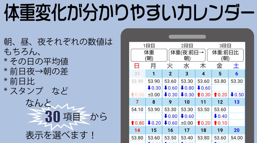 1日3回記録ができる体重ダイアリー 2.7
