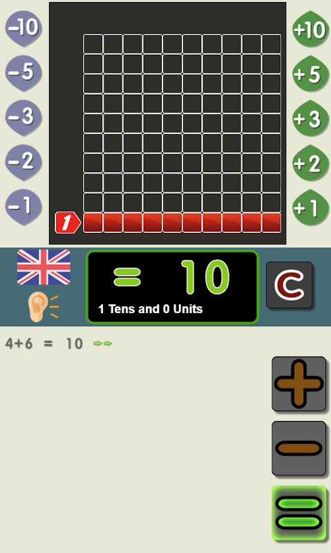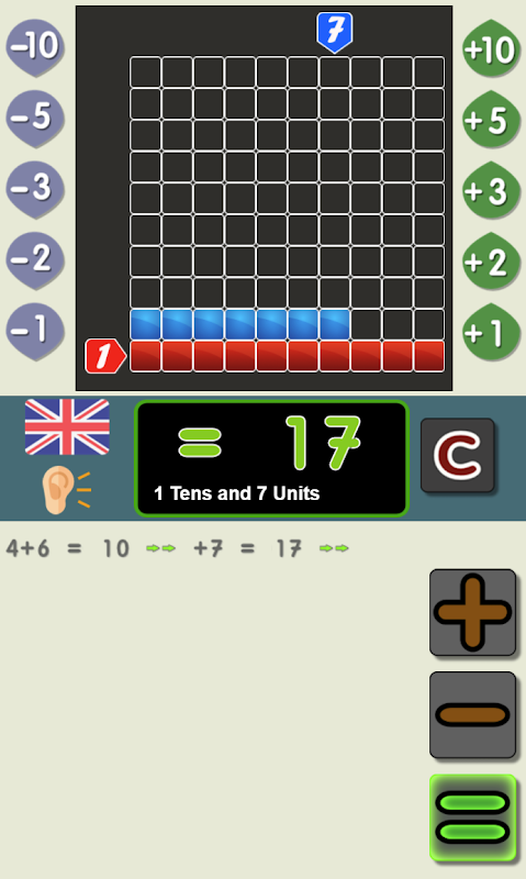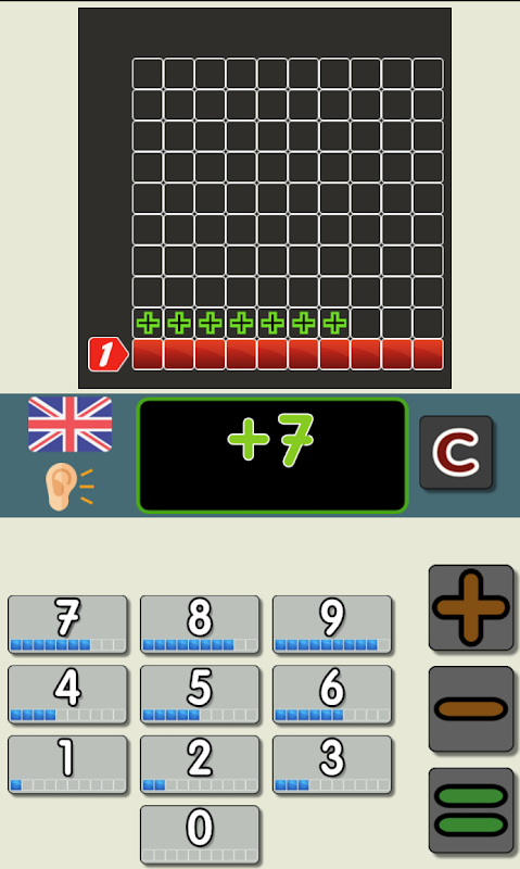 Calculadora para sumar y restar del 0 al 100 con voz en varios idiomas. También se puede utilizar para resolver operaciones de sumas y restas encadenadas.