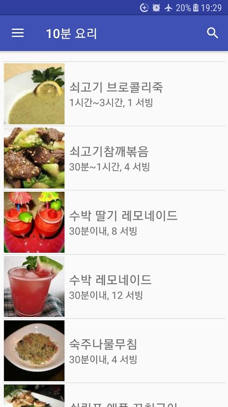 10분레시피 목록:
