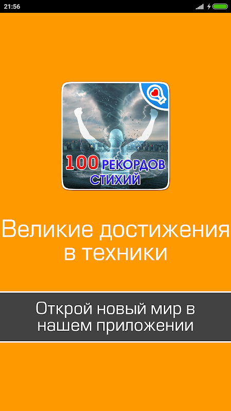 Установите приложение "100 великих рекордов стихий" и погрузитесь в мир гипотез и моделирования фатальных для человечества катастроф.