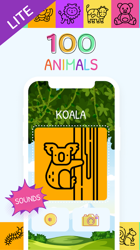 Ilustrasi cerah, gambar nyata, dan suara untuk mendorong anak-anak belajar saat mereka diperkenalkan dengan 100 hewan, aplikasi sempurna untuk pelajar cilik!
