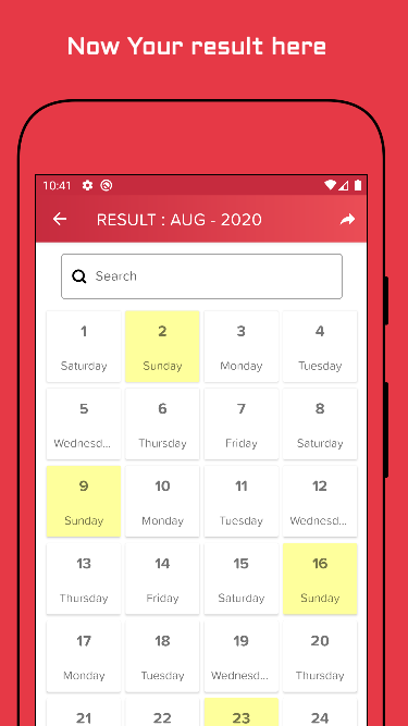 Aplikasi ini memungkinkan Anda untuk menemukan hari-hari dalam seminggu di setiap tahun dari 2001 hingga 2100