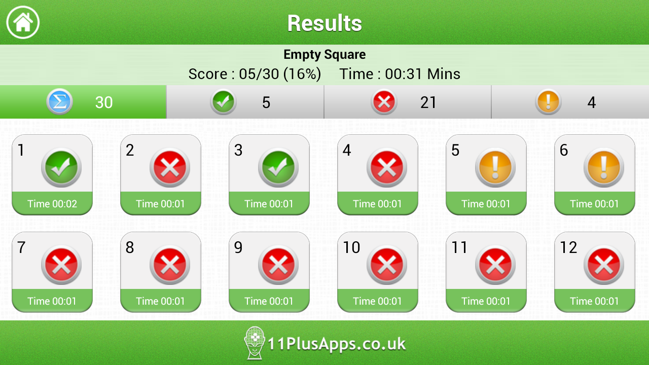 Pada penyelesaian setiap tes pengguna diberikan ringkasan pertanyaan dijawab dengan benar, tidak benar dan dilewati bersama dengan waktu yang dibutuhkan pada setiap pertanyaan. Setiap pertanyaan dapat ditinjau dan semua pertanyaan memiliki penjelasan jawabannya.