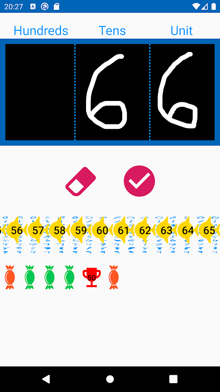 Numprofi paling cocok untuk anak-anak taman kanak-kanak dan kelas satu untuk berlatih menulis angka dari 1 hingga 999. Papan tulis dalam aplikasi dibagi dalam posisi Ones, Tens and Hundred untuk lebih memahami konsep ini. Layar penulisan nomor berurutan aplikasi di mana seseorang harus menulis secara berurutan dimulai dengan 1 dan Aplikasi memberikan permen pada setiap 10 nomor dan juga penghargaan piala untuk nomor yang lebih besar mis. 50, 100. Layar Mendengar dan Menulis Aplikasi mengucapkan angka saat menekan tombol Putar dan seseorang harus menulis angka yang sama untuk mendapatkan senyum bahagia. Aplikasi saat ini mendukung bahasa Inggris dan Deutsch.
