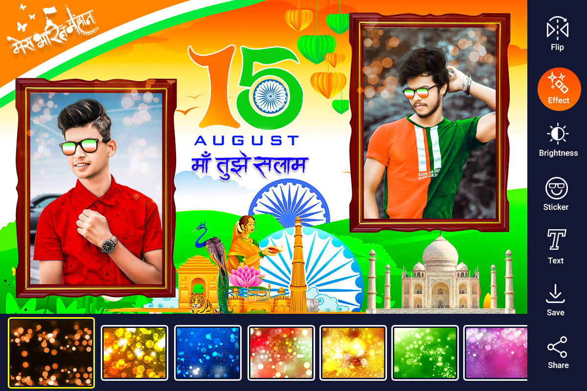 dan berikan foto Anda tampilan 15 Agustus yang penuh warna. Sekarang Anda dapat menyimpan dan membagikan foto ini di whatsapp, facebook, dll ..