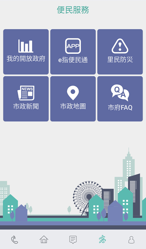 整合了高雄市政府多元的便民服務,包括:1999電話專線、市長信箱、報修派工、市政新聞、市政FAQ、停車拖吊、里民防災、服務地圖 等各大功能。