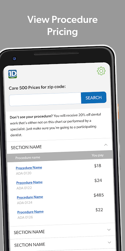Gunakan aplikasi 1Dental untuk melihat penghematan, menemukan dokter gigi, menghubungi layanan pelanggan & lainnya.