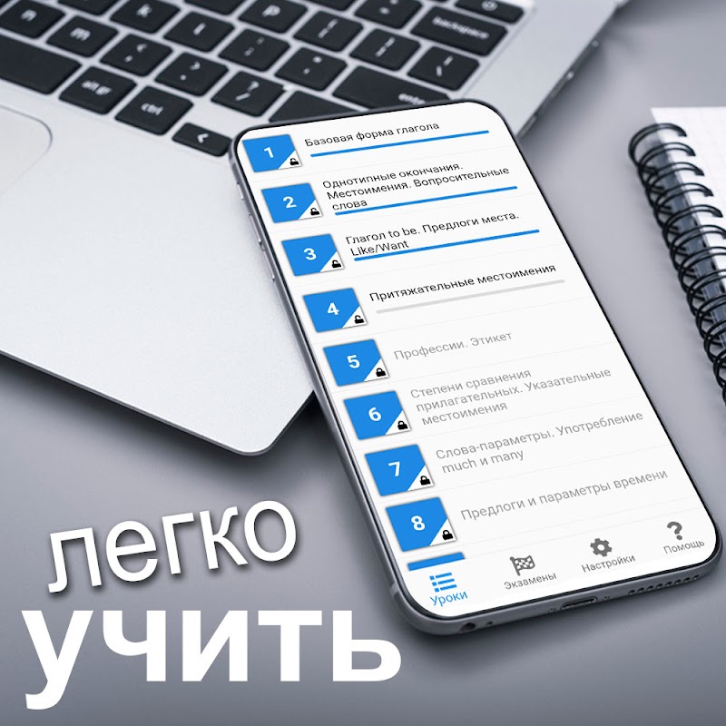 Tingkat kesulitan dalam aplikasi pada awalnya diatur ke sedang, jika Anda benar-benar ingin belajar bahasa Inggris, kami tidak menyarankan mengubah level menjadi mudah. Jika Anda "terjebak" dalam suatu pelajaran, aplikasi akan "menyiksa" Anda, mengasah pengetahuan Anda, setelah sepenuhnya memahami dan menguasai materi, pelajaran akan selesai dalam hitungan menit.