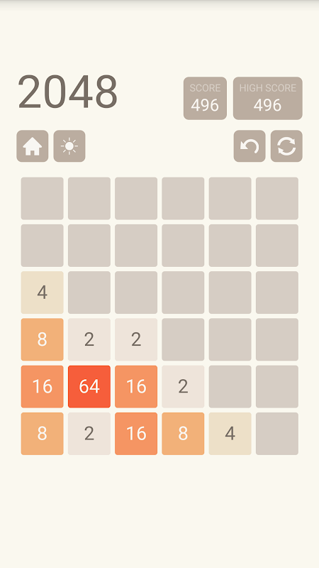 Geser 4 arah (Kiri, Kanan, Atas, Bawah) untuk memindahkan ubin dan menggabungkan angka. Cobalah untuk mencapai ubin 2048 dengan bergabung dengan angka. Mulai dengan 2 kemudian mencapai 4-> 16-> 64-> 512-> 1024-> 2048. Anda dapat terus bermain setelah mencapai angka 2048.