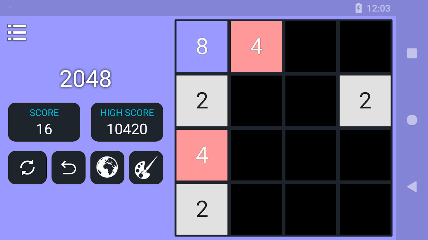 With the help of undo feature, You can easily Highest Score: Create Tile 2048 is first challenge. However you can achieve Tile 4096 or Tile8192, 16384, 32768, 65536, 131072 More.
