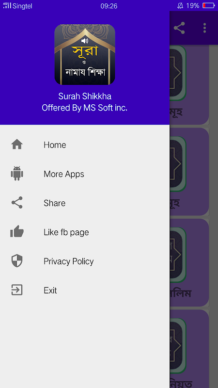 যাতে করে খুব সহজেই সূরাগুলি শুনতে, পড়তে ও বুঝতে পারেন। যারা এখনো নাময পড়ার জন্য সূরা শিখেন নাই এই Aplikasi