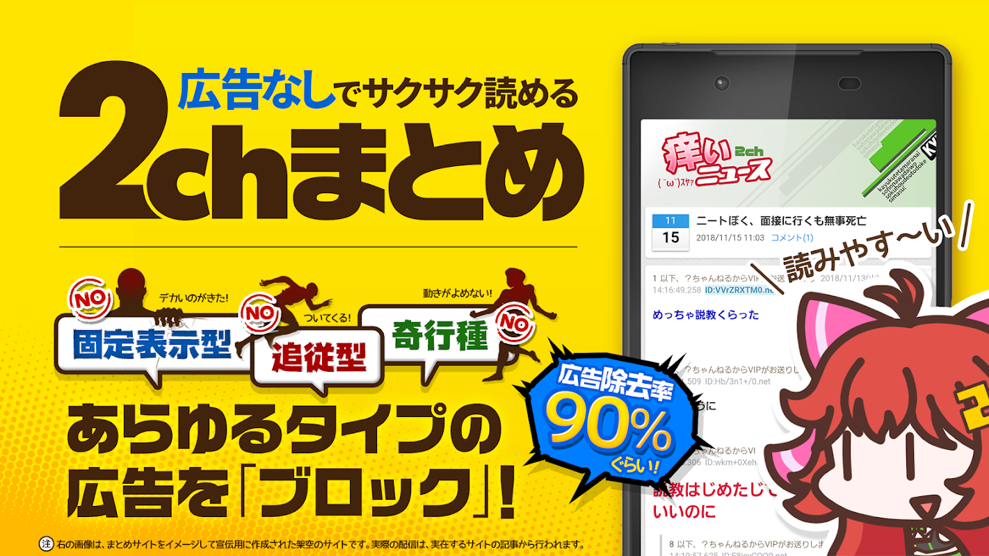 Aplikasi ringkasan 2ch menghapus iklan dalam jumlah sedang yang ditampilkan di situs ringkasan 2ch (sekitar 90%).