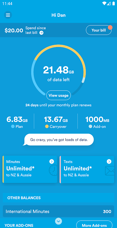 • Lihat panggilan, teks, dan penggunaan data dalam grafik kami yang funky dan mudah dibaca