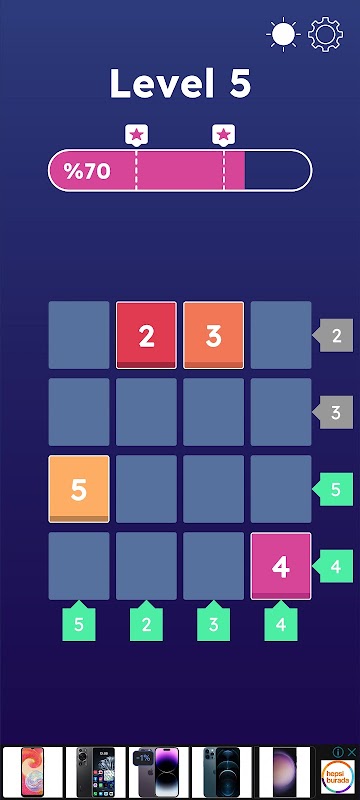 Biarkan jumlah balok sama dengan angka di baris dan kolom!