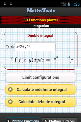 Application makes dynamic calculations for user-input equations, such us double integral and partial derivates, differentiable operators ...